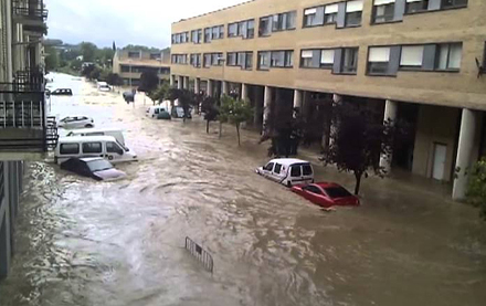 En mandlig bilist måtte evakueres i helikopter, da hans bil pludselig blev fanget i vandmasserne ved en kirkegård i Villava. Vandet steg så hurtigt, at manden måtte kravle op på bilens tag, hvorfra han blev reddet af helikopter.