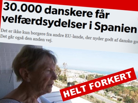 Under rubrikken '30.000 danskere får velfærdsydelser i Spanien' lyder det blandt andet: