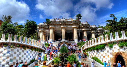 Park Güell er et stort parkanlæg med en masse forskellige arkitektoniske perler, placeret på toppen af el Carmel i Gràcia distriktet i Barcelona. Park Güell designet og udformet med det formål at give gæsten er følelse af fred og ro. Bygningerne, der flankerer indgangen, er meget originale og bemærkelsesværdige med helt fantastisk udformede tage og tårne.