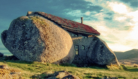 Det ligner næsten noget, der er løgn, men den er god nok, og der er faktisk mange huse i Portugal, der er bygget mellem, omkring og under kæmpe klippekonstruktioner. Byen Monsanto skulle efter sigende have mange gode eksempler på det.