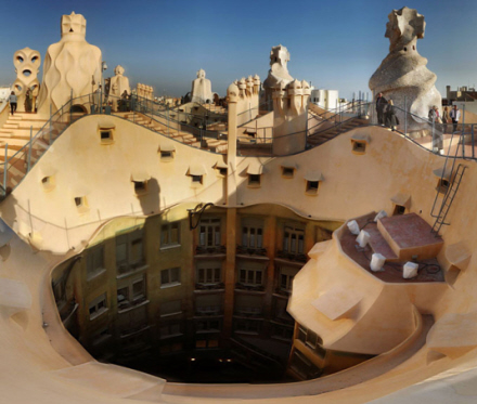Så er vi igen tilbage i Spanien. Bygningen blev egentlig lavet til ægteparret Rosario Segimon og Pere Milà. Men det var ikke hele Gaudís design, der blev godkendt af lokalstyret, men det var de ligeglade med, så ejerne fik bøder og påbud om at rive noget ned igen. Eksempelvis var højden overskredet i forhold til lokalplanen. Der blev heller ikke givet tilladelse til en stor skulptur, der skulle have rejst sig på toppen af bygningen.