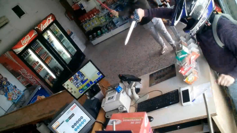 VIDEO: Med stor kniv og bat truede duoen sig til penge.
