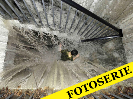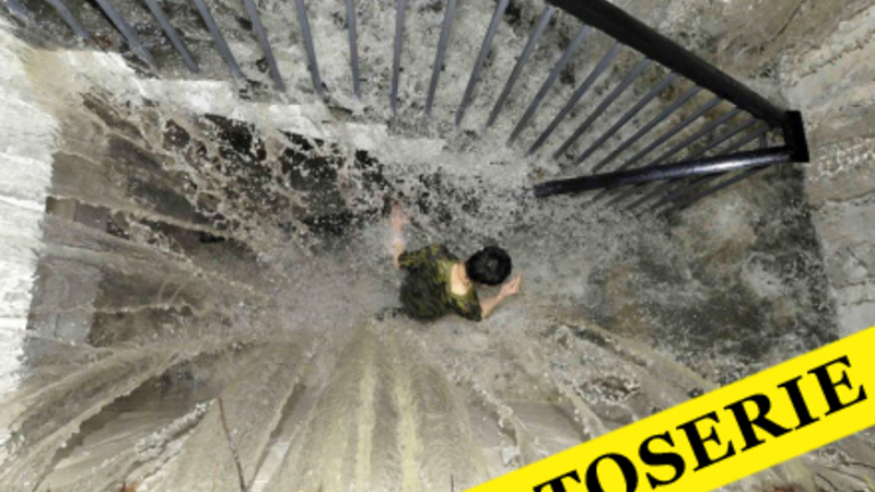 En kvinde forsøger desperat at holde vandet væk