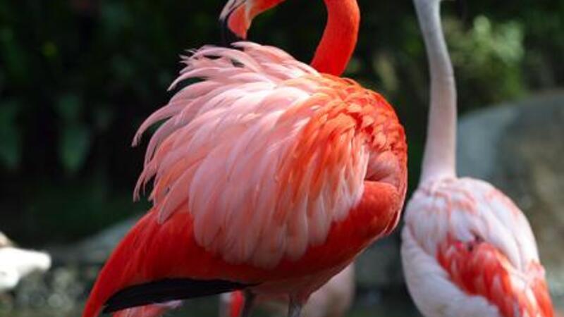 Flamingo (Phoenicopterus roseus, ungfugl)