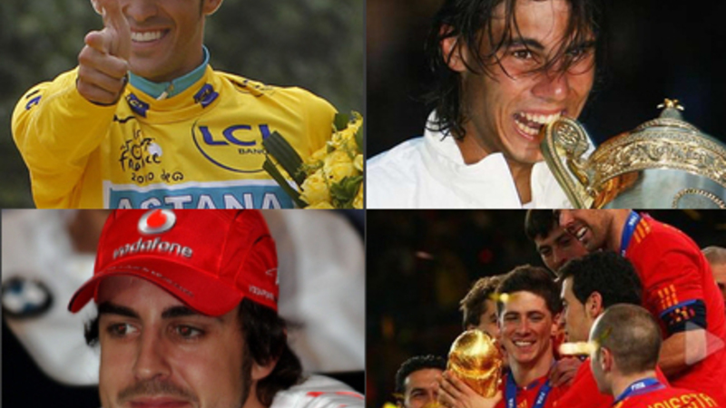 Rafael Nadal gjorde det i Wimbledon, Spanien blev verdensmestre i fodbold og søndag vandt Fernando Alonso Formel 1 i Tyskland og Alberto Contador Le Tour de Francia. Eneste ydmygende plet var, da Frankrig for kort tid siden eliminerede Spanien fra Davis Cup i tennis.