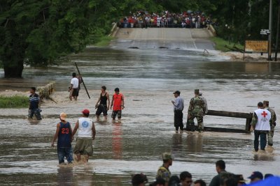 Broen over floden ved Inidana var på et tidspunkt dækket af vand og det betød at indbyggerne ikke kunne komme ud.