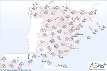 Der er udsigt til sne i den nordlige del af Asndalusien. I Jaén, Cazorla, Guadix og Baza i Granada kan der komme op til 5 cm. Sne.