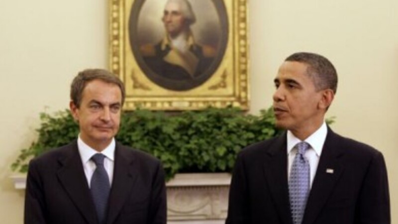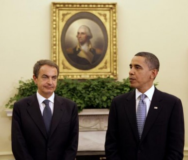 Zapatero måtte under sit besøg i Washington i går forsvare regeringens strategi og hævdede samtidig at der var internationale spekulanter i markedet, som ønskede at skabe eurozonen.