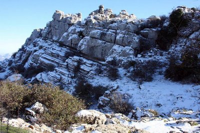 Der faldt i går en smule sne i flere landkommuner nord for Málaga. Snevejret varede tre kvarter, men snefnuggene ikke liggende, undtaget i El Torcal, hvor der i morges lå et fint lag sne.