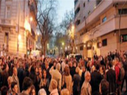 Demonstrationen fandt sted i den centrale hovedgade, Calle de Génova i Madrid, som huser både højesteret og det konservative partis hovedkontor.