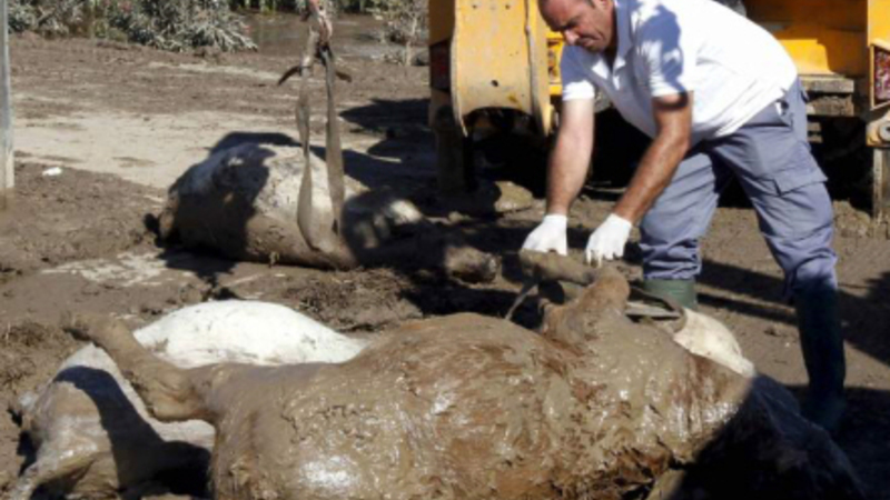 Uvejret over Sydspanien har forårsaget skader for mindst 120 millioner euro, eller næsten 900 millioner kroner, og ufatteligt mange dyr måtte opgive kampen mod vandmasserne.