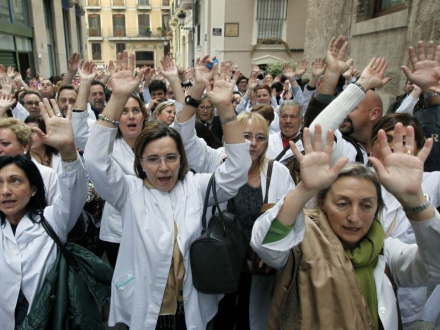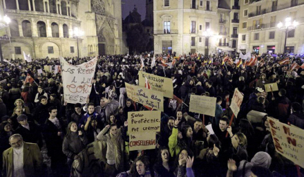 Det er fagforeningerne, der har opfordret til demonstrationerne, efter lokalregeringen i Valencia, som er en af Spaniens mest forgældede regioner, har annonceret nedskæringer i sundhedsvæsnet og skolesystemet for 1,1 milliard euro (8,2 milliarder kroner).