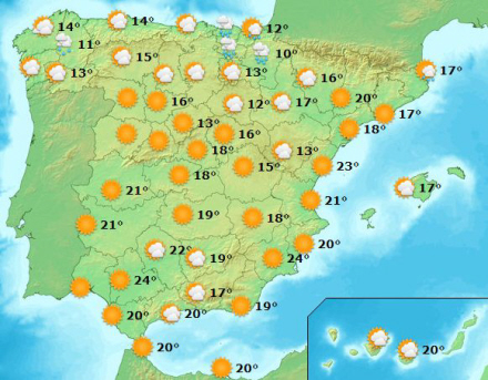 Talsmand for spanske meteorologisk institut, AEMET, Alejandro Lomas, minder om, at hele foråret har været køligere end normalt, og at temperaturene i Spanien fortsat ligger under det normale. Det kølige vejr fortsætter frem til den 2. juni, hvorefter der så skulle være varmere vejr i vente.