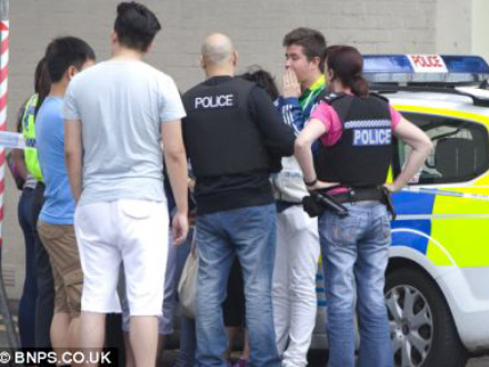 Mindre end en halv time efter fundet af det hovedløse lig, anholdte politiet den formodede gerningsmand uden for et privathospital i Bournemouth, efter at have fulgt et tydeligt blodspor fra lejligheden.