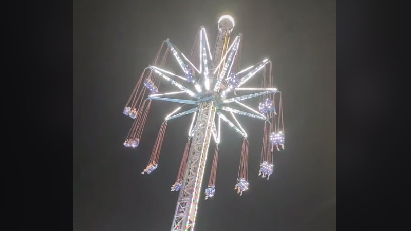 Forlystelsen stiger højt lodret op i luften for at få sæderne til at rotere i høj hastighed, men da forlystelsens sikkerhedssystem pludselig ikke kunne registrere det ene kabel, stoppede mekanismen.
