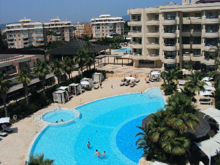 Det U-formede hotel giver udsigt over poolområde fra alle værelser