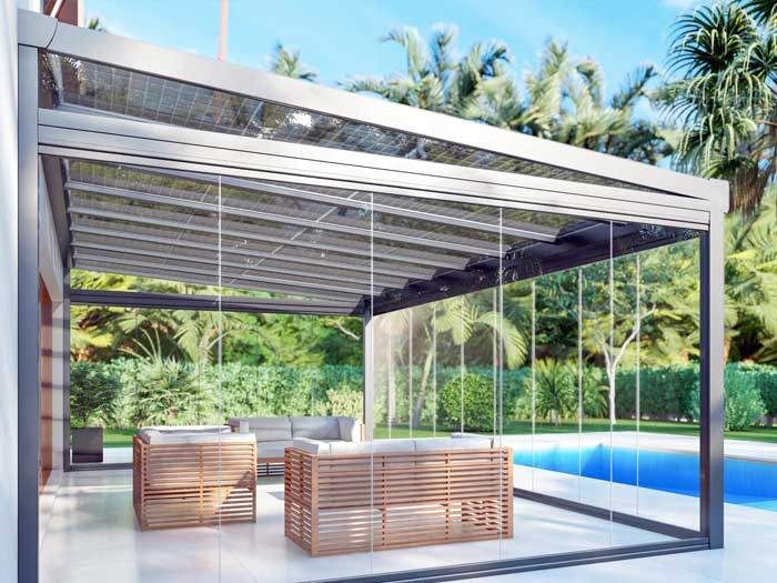 Bolig pakket ind i gennemsigtige solpaneler