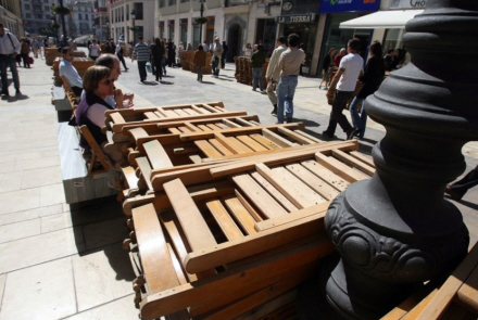 Klapstolene i gågaden Calle Larios er klar til at blive stillet op