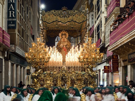 La Virgen de la Esperanza vejer 5,5 ton og er den største og tungeste trone under påskeoptogene i Málaga