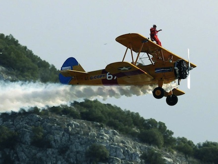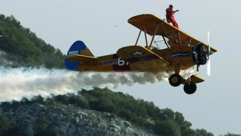 Bedstefar med slag i lod sig binde til et fly og fløj tværs over Gibraltar lørdag. Den 94-årige stod på flyet i 25 minutter og lavede det såkaldte ‘loop-the-loop’.