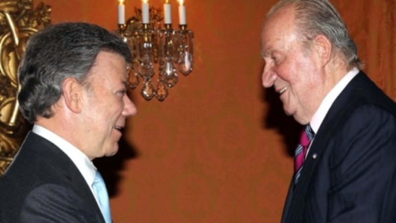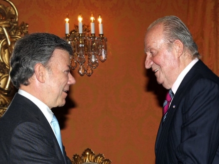 Senere besøgte Juan Carlos Præsident Santos, hvor han understregede Spaniens støtte til landet – ikke mindst med hensyn til fredsprocesser. De to landes delegationer var tilstede.