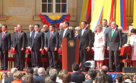 Ceremonien den 7. august, hvor Præsident Santos genindsættes i embedet