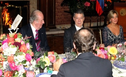 Dagens sluttede med festmiddag i Palacio de San Carlos, hvor både Præsident Santos og Juan Carlos udvekslede taler med flatterende ord til hinanden.