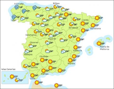 Ifølge Meteorologisk Institut, AEMET, bringer et kraftigt lavtryk en del regn til landet i løbet af de næste dage. Det giver først og fremmest ret skyet vejr og regn i den nordvestlige del, og senere i resten af fastlandet.