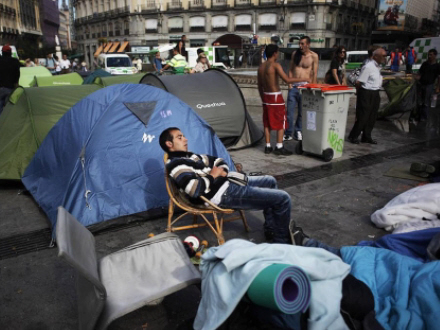 Puerta del Sol har i dag haft besøg af en række nysgerrige deriblandt udenlandske turister, der ser protest-aktionen i den spanske hovedstad som en ekstra attraktion og kulturseværdighed.