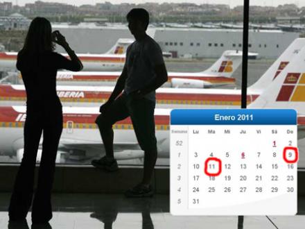 Der bliver aflyst i alt 15 fly til og fra andalusiske lufthavne i forbindelse med den forestående arbejdsnedlæggelse blandt Iberias piloter den 9. og 11. januar.