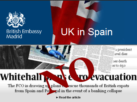Efter gårsdagens historier om, at det britiske udenrigsministerium har iværksat beredskabsplaner for at evakuere britiske statsborgere fra Spanien og Portugal har en talsmand fra den britiske ambassade i Madrid afvist.