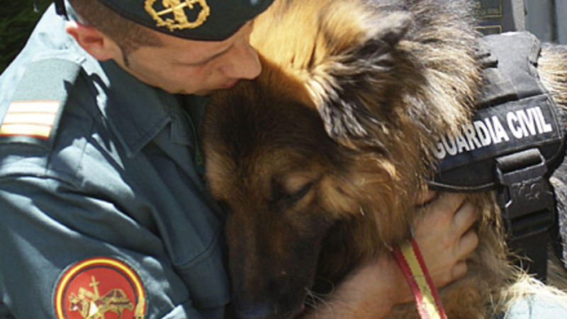 Spaniens mest berømte helte-hund, Ajax, som nåede at komme i audiens hos Kong Juan Carlos og få en international medalje for sin tapperhed, e...