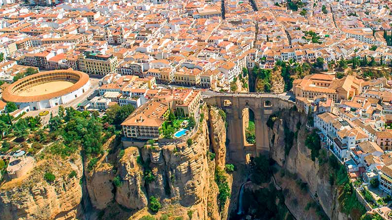 Ronda er kendt for sin ekstremt flotte positionering på toppen af en klippe i højlandet knap to timers kørsel fra Costa del Sol. Det nok mest ikoniske i byen er vejbroen Puente Nuevo. Det er den nyeste og største af tre broer, der krydser den 120 meter dybe kløft El Tajo, hvor floden Guadalevin flyder igennem og dermed deler byen i to. Ud over vanvittigt flot udsigt kan man også nyde en af landets flotteste og mest imponerende tyrefægterareaner.