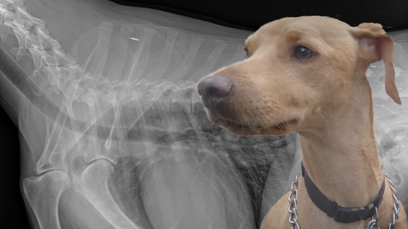 En dyrlæge gik straks i gang med et stetoskop og et termometer, mens en anden registrerede Don Pablo og ejerforholdet. Efter kort tid kom en anden dyrlæge. Vi fortalte om situationen, havde taget en tilsvarende kniv med, og hun tog Don Pablo med til røntgen uden protester fra ham.