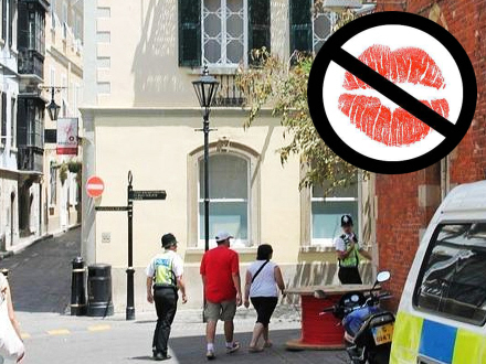 Forholdet med Gibraltar og Spanien er ikke det allerbedste, og sindene kom atter i kog, da fem spanske turister blev anholdt af politiet på Gibraltar. Forbrydelsen? De kyssede en spansk fodboldtrøje.