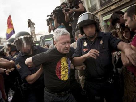 Men den tidligere konservative politiker Jorge Vestrynge – nu medlem af det nye venstreorienterede borgerparti Podemos - blev anholdt, da han forsøgte at komme igennem en politikæde, fordi ”han ville hjem". Nogle blev anholdt for civil ulydighed og for at have råbt republikanske slagord.