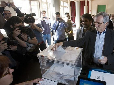 Ciu's kandidat til kommunalvalget i Barcelona, Xavier Trias, under afstemningen i går.