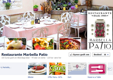 Restaurant Marbella Patio er den første restaurant i Spanien, der tilbyder sine kunder mulighed for at bestille bord via deres Facebook fan-side. Denne særlige applikation er blevet udviklet af reklamebureauet Málaga Shout!