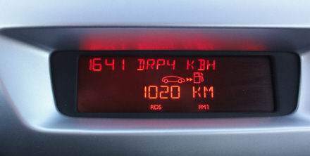 Den første streg lige efter ”fuld” forsvandt dog efter kun cirka 35 km. og da jeg nogle dage senere fyldte C3'eren op med diesel, viste sladrehanken, efter nulstilling, at der nu var 1020 km. tilbage inden næste opfyldning.