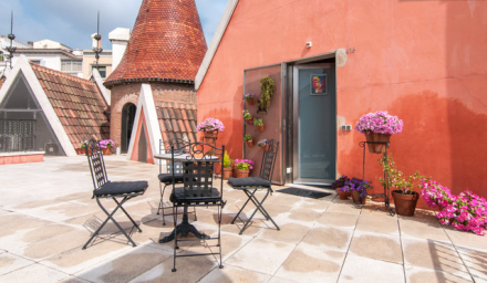 Slotsophold er også blevet nyfortolket. Denne lyserøde drøm af et hjem på sølle 29 kvadratmeter. Det ligger i toppen af en bygning i Barcelona og koster fra 820 kroner per nat.