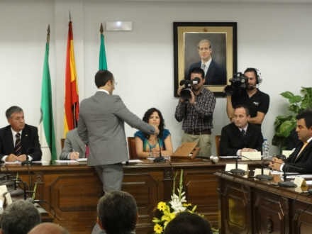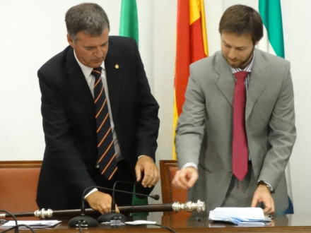 ”Og resultatet er” sagde kommunesekretæren, ”at Mijas' nye borgmester er Ángel Nozal...” og overrakte samtidig borgmesterstangen til ham