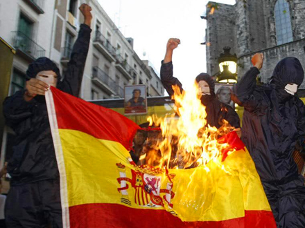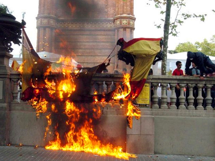 Under en demonstration i Barcelonas gader satte en gruppe maskerede unge mennesker ild til spanske og franske flag og brændte også fotografier af Spaniens Kong Juan Carlos. Der var mellem 10.000 og 40.000 deltagere i demonstrationen, som var arrangeret af ultranationalistiske partier og borgergrupper.