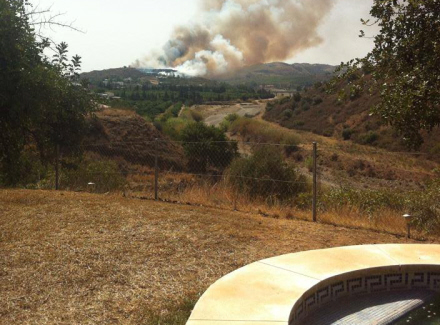 I området kaldet El Rincón del Hinojal, der ligger foruroligende tæt på tusindvis af lejligheder i La Cala Hills, opstod der kort efter klokken 11 brand. Flere beboere, i de blokke i La Cala Hills, der ligger nærmest branden, blev evakueret.