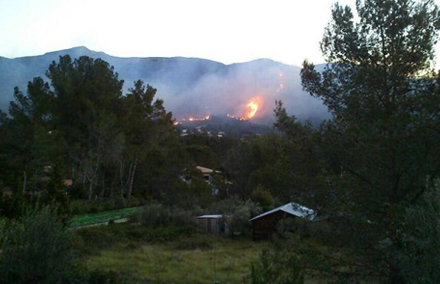 Der gik bare få minutter før ilden havde bredt sig til det bjergrige Penyalba-område, der er den højeste bjergtop i Valencia. Herefter besluttede politiet så at spærre for adgangen til det nærliggende beboelsesområde Les foies de Simat, og kort efter blev der også lukket for tilkørsel til Gandia.