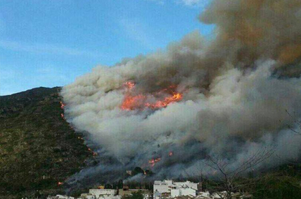 Den kraftige røgsky kan ses helt fra Pego, Denia og Xàtiva og i formiddag bevægede branden sig mod nabokommunen Safor.