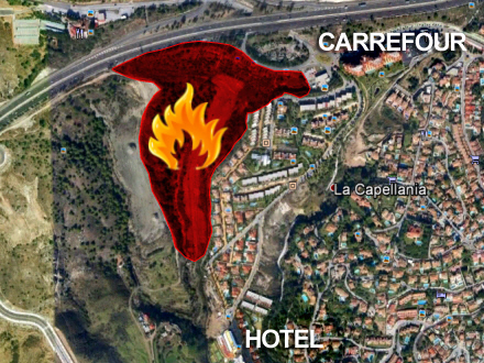 70 boliger i gaderne Calles Alisos, Fresno, Álamo, Pétula og Encina samt 40 gæster på det nærliggende hotel THB Reserva del Higuerón blev evakueret, mens brandfolk fra Benalmádena, Mijas, Fuengirola, Málaga og Torremolinos kæmpede med at få bugt med flammerne.