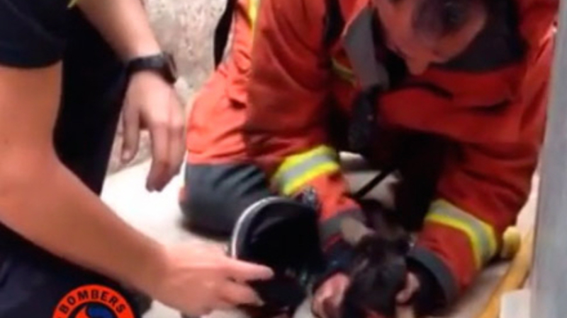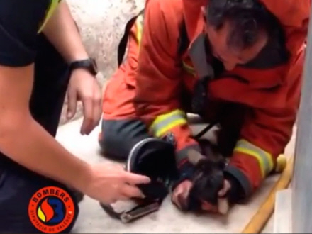 Brandmand redder hvalp med munden