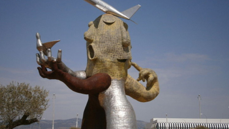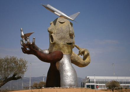 Når vi skriver, at lufthavnen endnu ikke har taget imod et eneste fly, er det faktisk ikke helt rigtigt. Et fly er faktisk ”landet” der, men det drejer sig om den meget omdiskuterede statue ”El hombre avion” (Menneskeflyet) af den kendte valencianske kunstner, Juan Ripollés. Men den sag var bare benzin på bålet for kritikere af projektet. Statuen er 24 meter høj, vejer 33 ton og kostede de regionale skatteborgere 300.000 euro.
