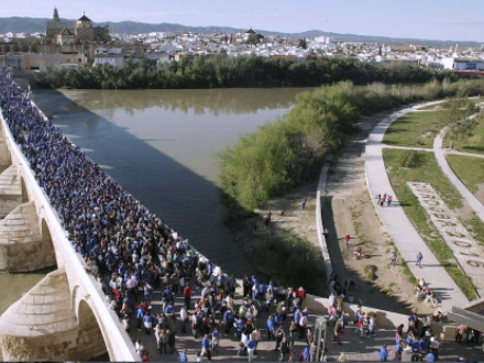 Klædt i blå trøjer gik de mange mennesker langsomt frem og tilbage over broen for at markere deres støtte til byens kandidatur til Kulturby 2016. Blandt deltagerne var flere generationer og hele familier med børn, børnebørn og oldebørn. Córdobas borgmester, Andrés Ocaña (IU) , siger, at han er overvældet over den eneorme deltagelse, og at der på et tidspunkt var så mange mennesker, at der ikke var plads på den gamle bro.