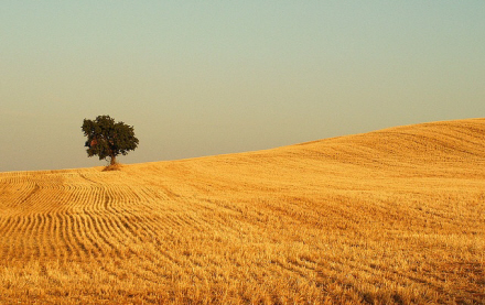 En enlig pilgrim i det spanske landskab